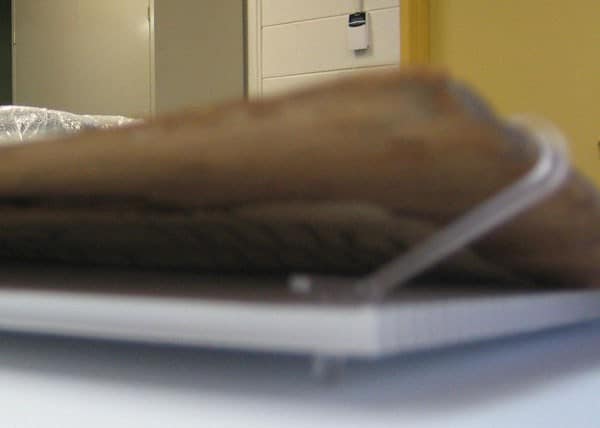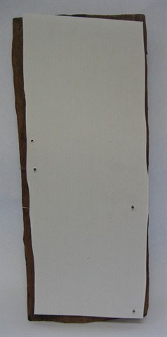 We have developed a new system for the mounting and display of bark paintings in which the work is mounted onto a fabric-covered board. The mounting system allows the bark to move freely (i.e. it is not restricted) so that cracking, splitting and destabilisation of the paint layer is significantly reduced. In addition, no part of the mounting system is adhered or permanently attached to the bark, preserving the integrity of the artwork.