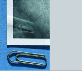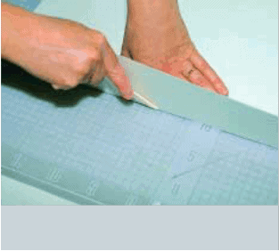 • a stainless steel ruler is placed along the repair paper, with the required amount of paper protruding beyond the ruler;