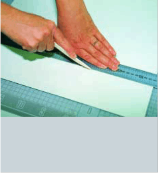 • the letter opener, bone folder or spatula is then drawn along the ruler—to score the wet paper; and
