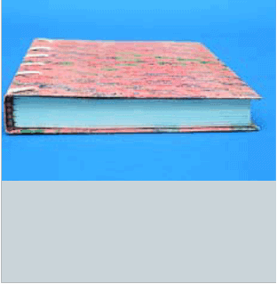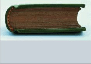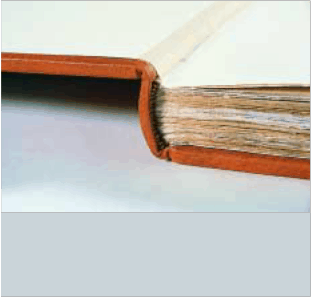 this case refers to the spine, which ideally remains flexible and curves when the book is opened, allowing the pages to throw open fully. In this style, the covering material, usually leather, is glued tight to the spine of the text block. Unfortunately, excessive lining and overenthusiastic use of glue have often led to very inflexible structures. This style of binding is also not suited to text blocks with very stiff paper.