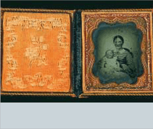 Chemically stable plastic or paper enclosures free of sulfur, acids, and peroxides are recommended. Plastic sleeves should be constructed of uncoated polyester, polypropylene, or polyethylene. They should not be frosted. Possibly lined with 100 percent rag or alpha-cellulose paper. Film-based negatives, which can produce acidic gasses as they age, should be stored separately from other photographic materials. Store cased objects, such as daguerreotypes and ambrotypes, in their original cases or frames with the addition of custom-made, four-flap paper, or polypropylene storage boxes, to reduce wear and tear on fragile cases. Place individually housed prints, negatives, and cased objects in acid-free, durable boxes that will afford further protection. The storage of photographs in albums serves the dual purpose of organizing groups of images while protecting them from physical and environmental damage. Albums can be wonderful sources of historic and genealogical information.